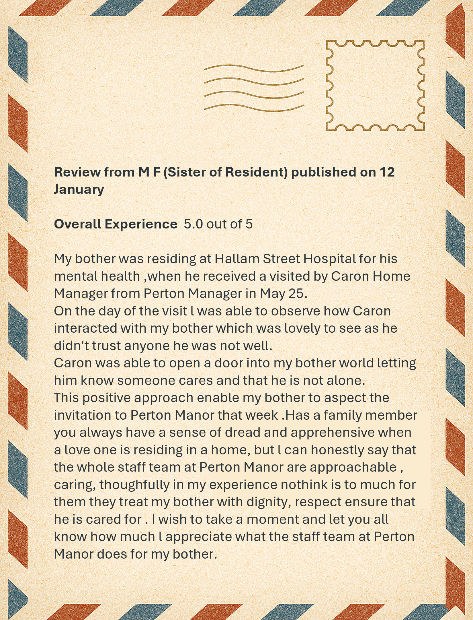 This gallery includes some examples of thank you notes we have received at Perton Manor.